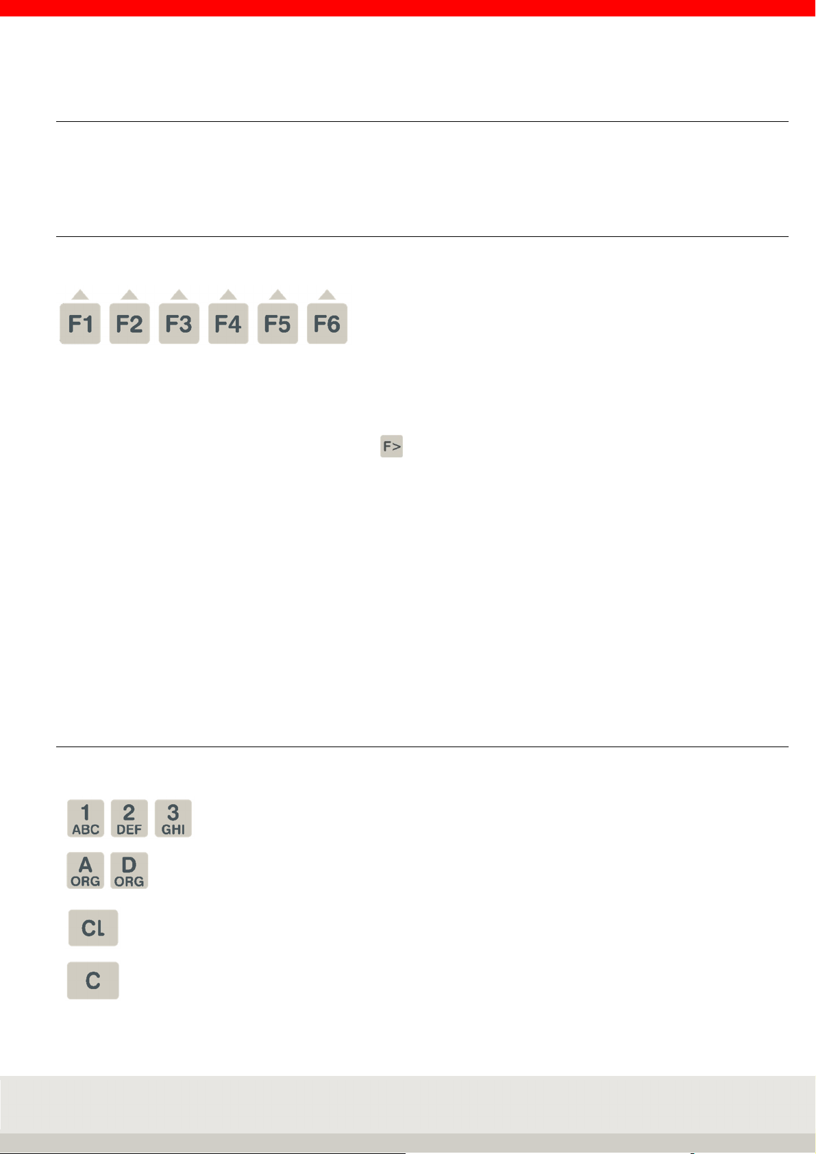 The function keys F1 to F6 are available for controlling the functions. These are assigned to three levels, the