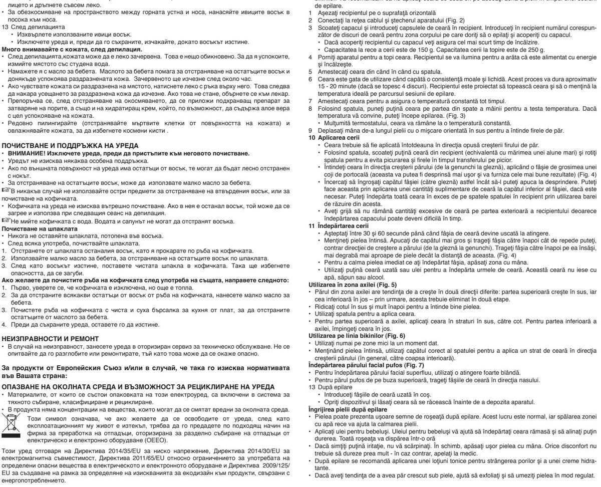използваните ивици восък. уреда и, преди да го съхраните, изчакайте, докато восъкът изстине. те с кожата, след депилация. ята,кожата може да е леко зачервена. Това е нещо обикновено. За да я успокоите,