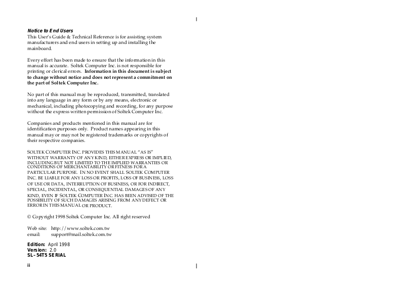 manual is accurate. Soltek Computer Inc. is not responsible for