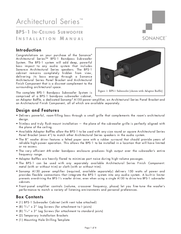 For the latest Sonance product specification information visit our website: www.sonance.com