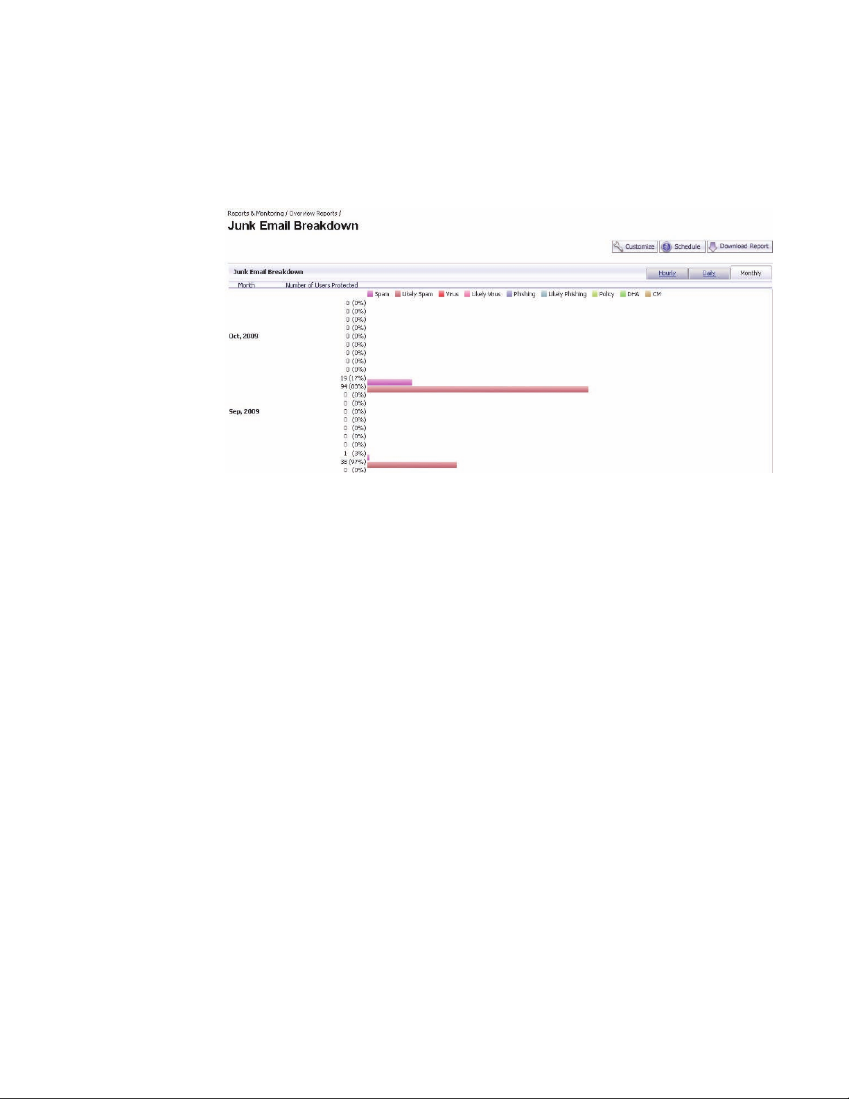 The Junk Email Breakdown page illustrates the types of messages received, and sh ows the