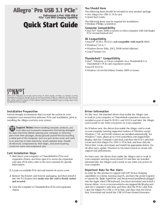 ©2019 Sonnet Technologies, Inc. All rights reserved. Sonnet, the Sonnet logotype, and Allegro are trademarks of Sonnet