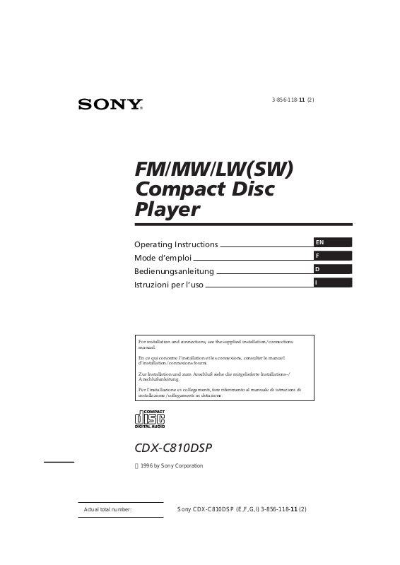 Actual total number:Sony CDX-C810DSP (E,F,G,I) 3-856-118-11 (2)