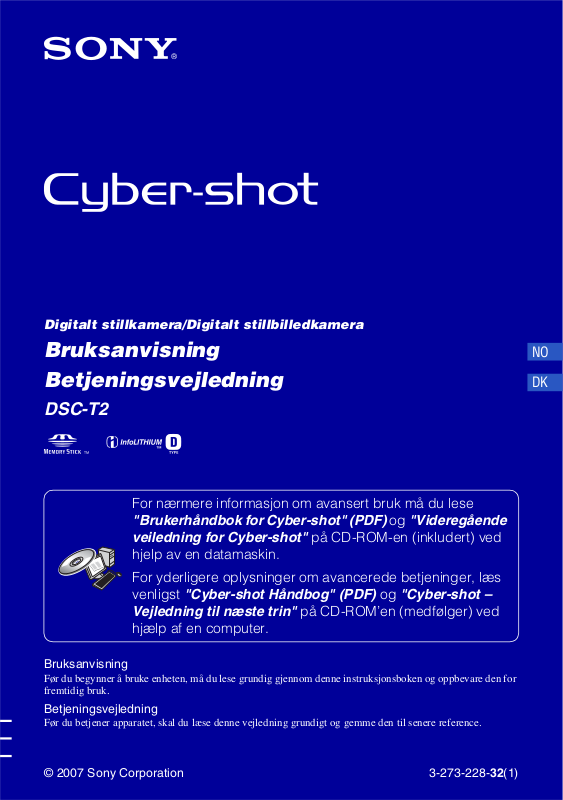 "Brukerhåndbok for Cyber-shot" (PDF) og "Videregående