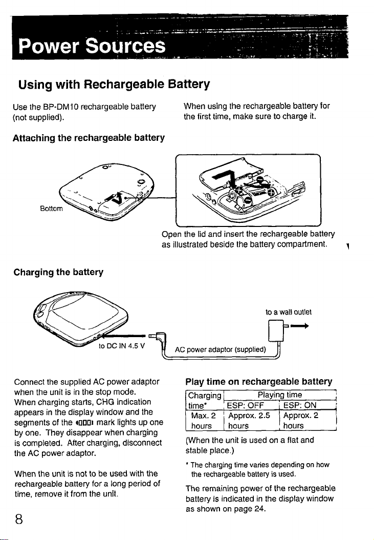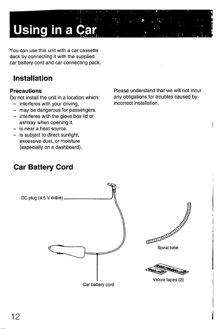 • DC IN 4.5 V jack accepts the car battery cord for use on