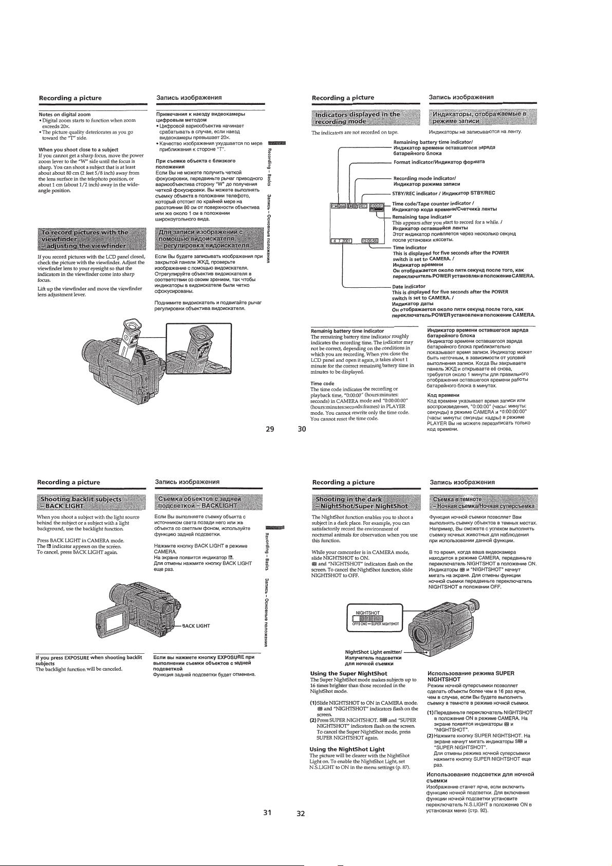 Shooting in the dark –NightShot/Super NightShot ·············· 28