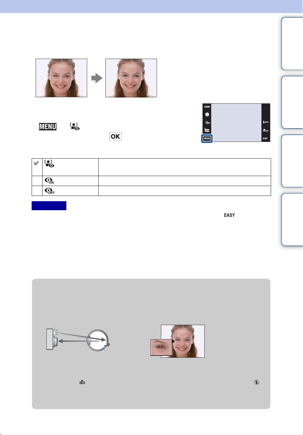 • Ak nepoužívate funkciu rozpoznania tváre, funkcia potlačenia efektu červených očí nefunguje