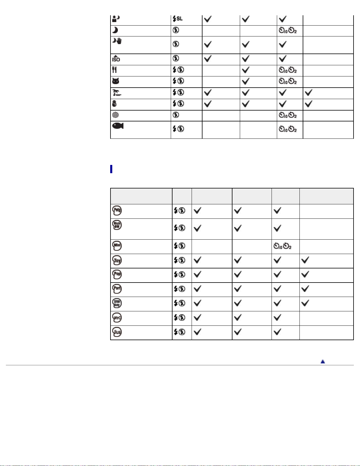 Functions available for each shooting mode