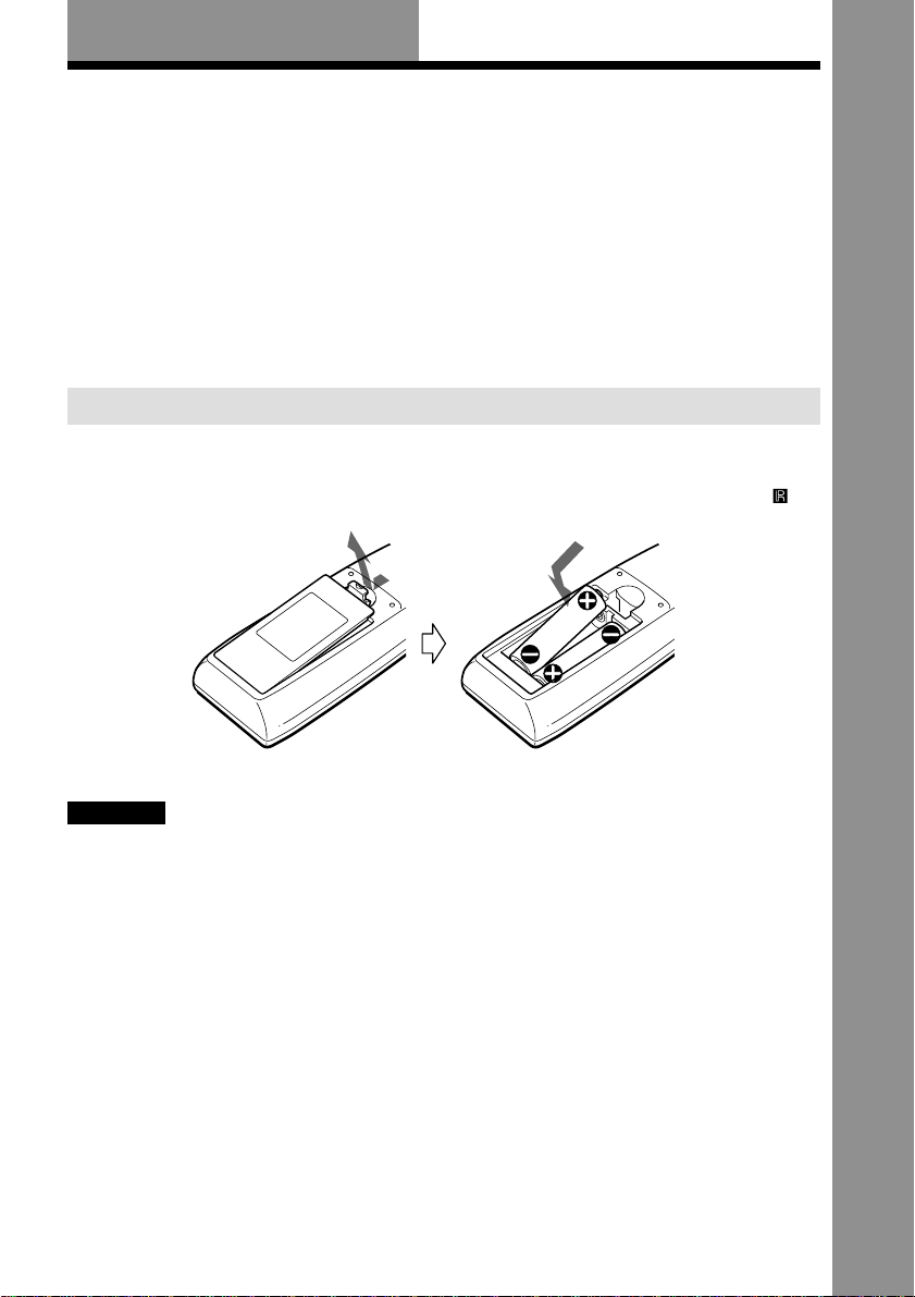 You can control the system using the supplied remote. Insert two size AA (R6) batteries by