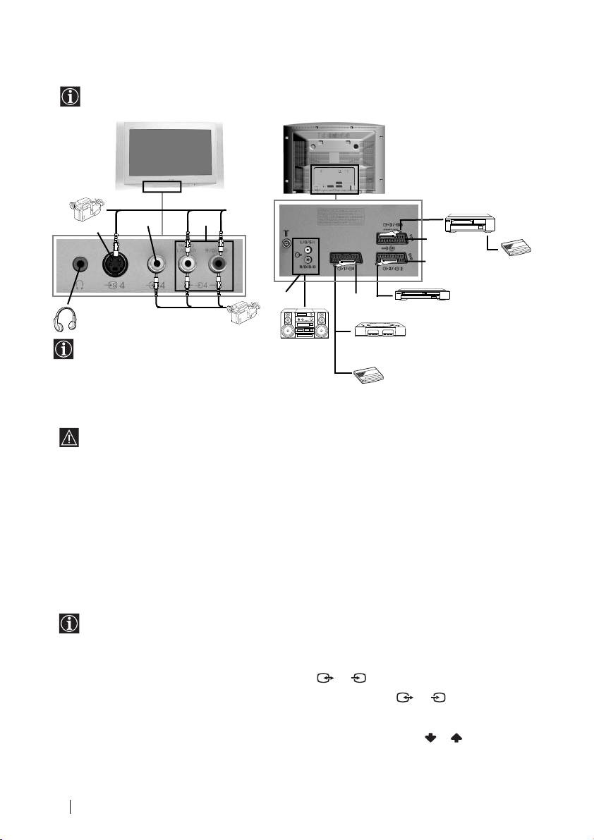 1 Sluit de extra apparatuur op de juiste ingang van het TV toestel aan volgens de