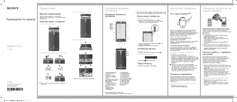 Данное руководство по началу работы публикуется компанией Sony Mobile