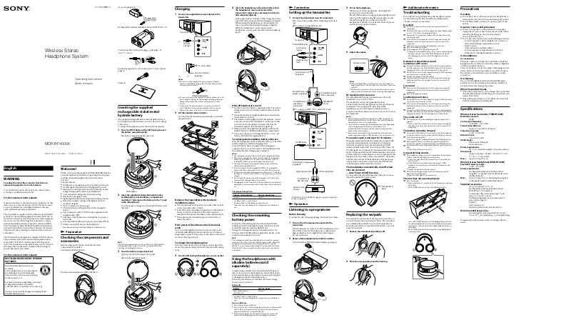 Thank you for purchasing the Sony MDR-RF4000K Wireless