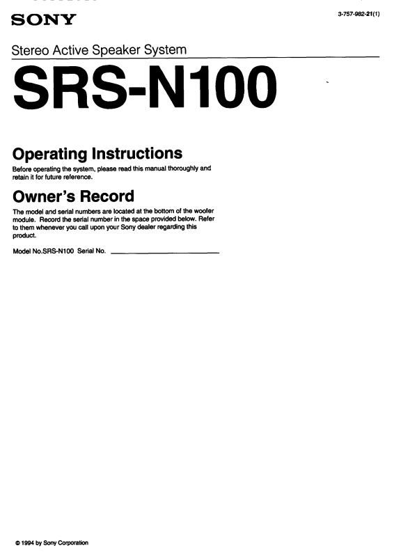 Sony SRSN100 User Manual
