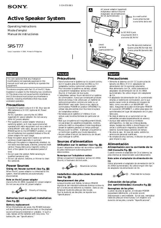 • Alimente el sistema con 6 V CC (cuatro pilas de