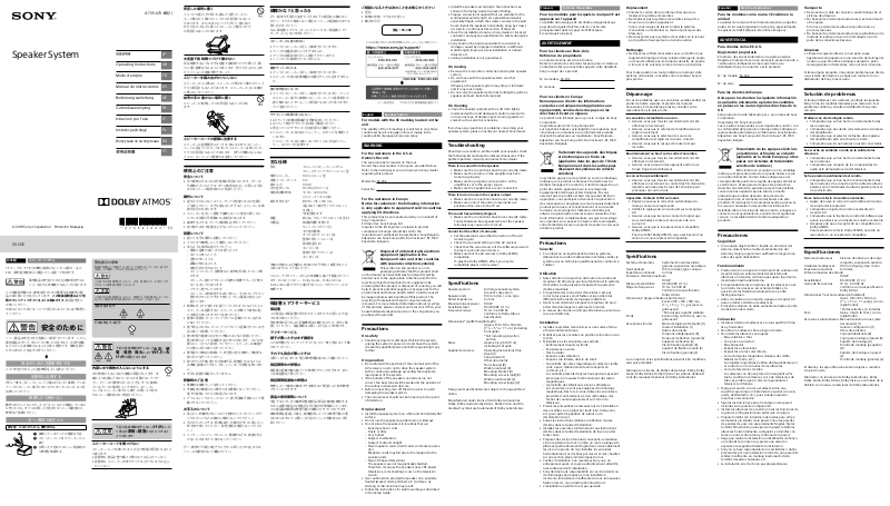如果您對揚聲器系統有任何疑問或問題,請就近與Sony經銷