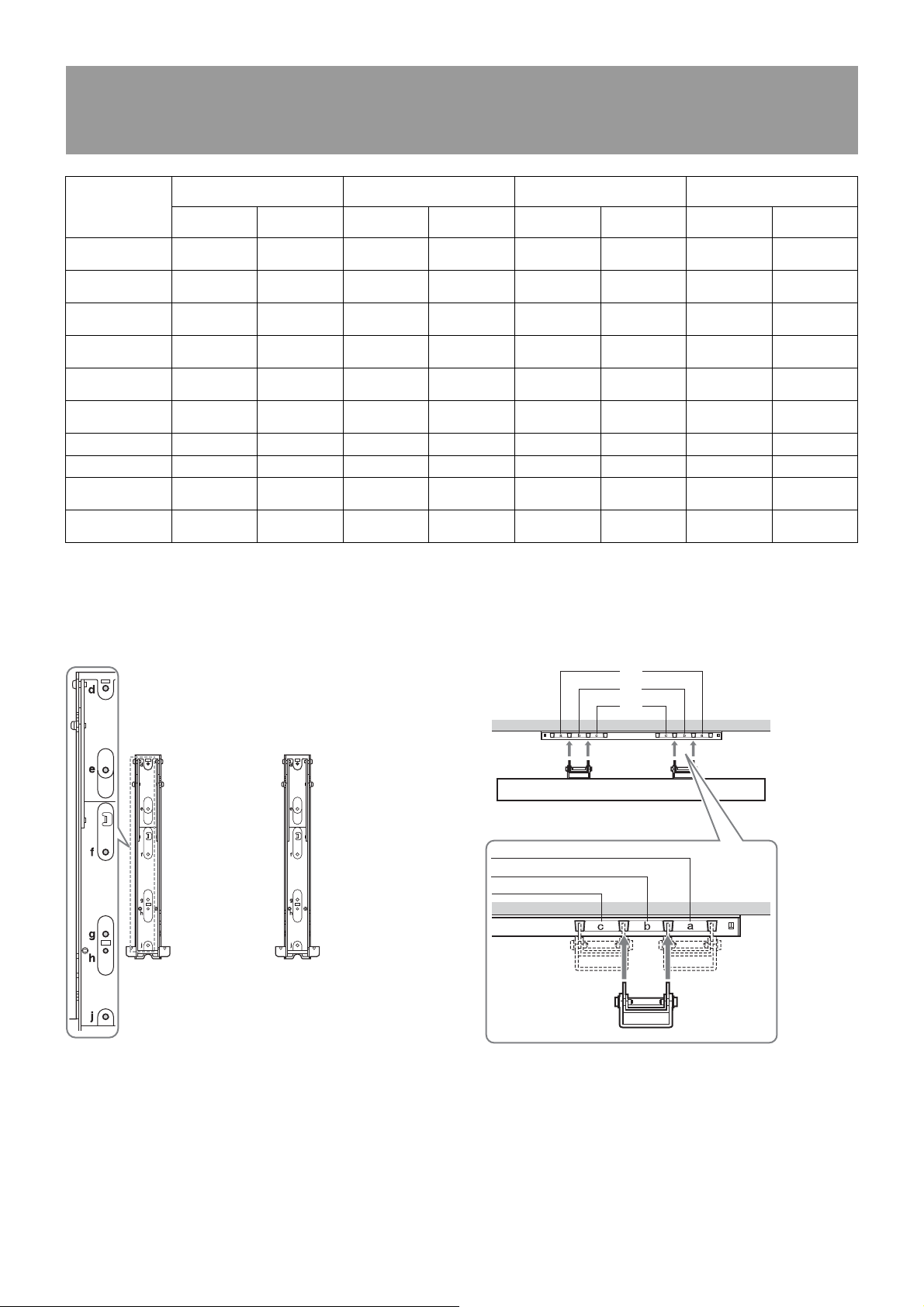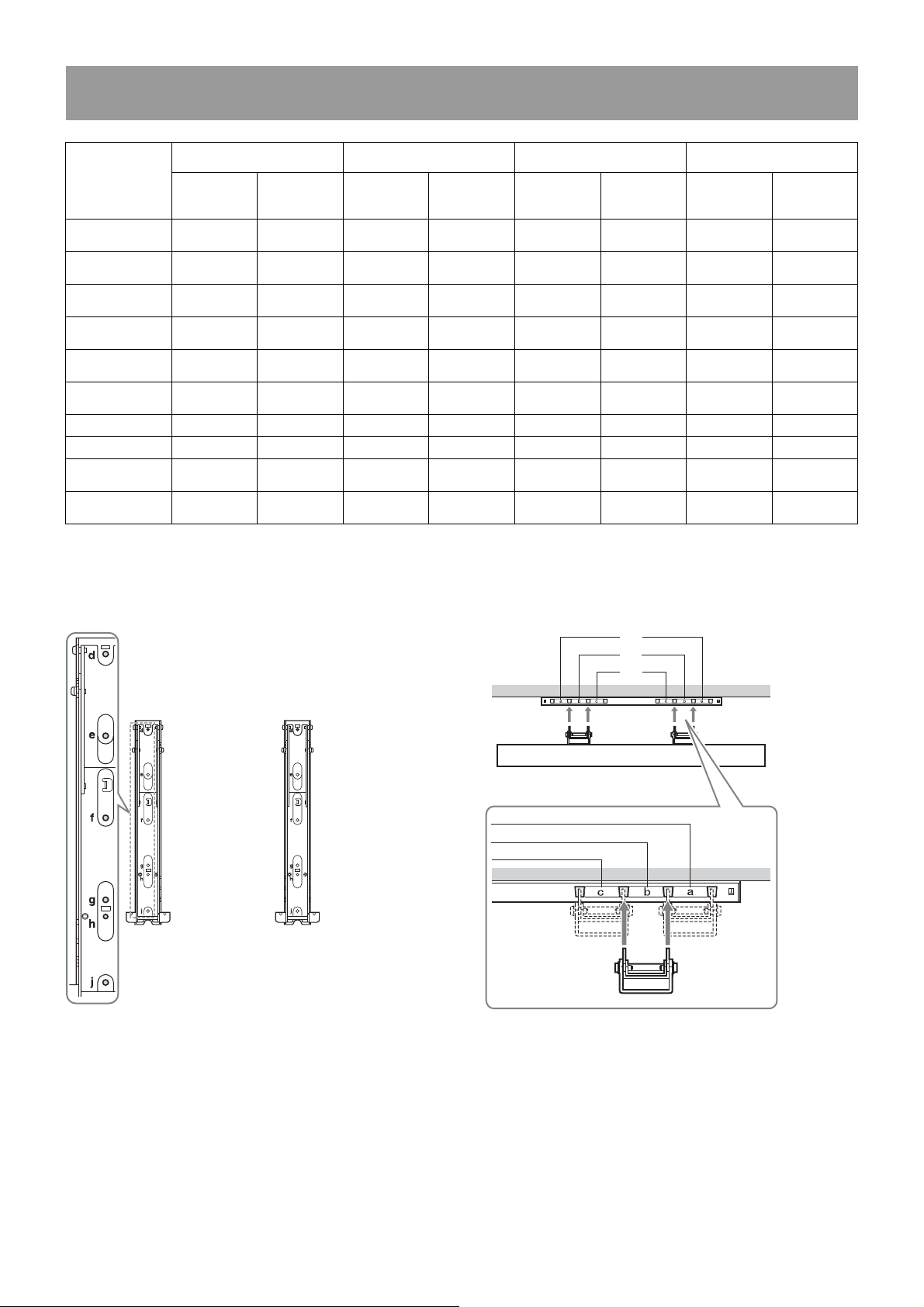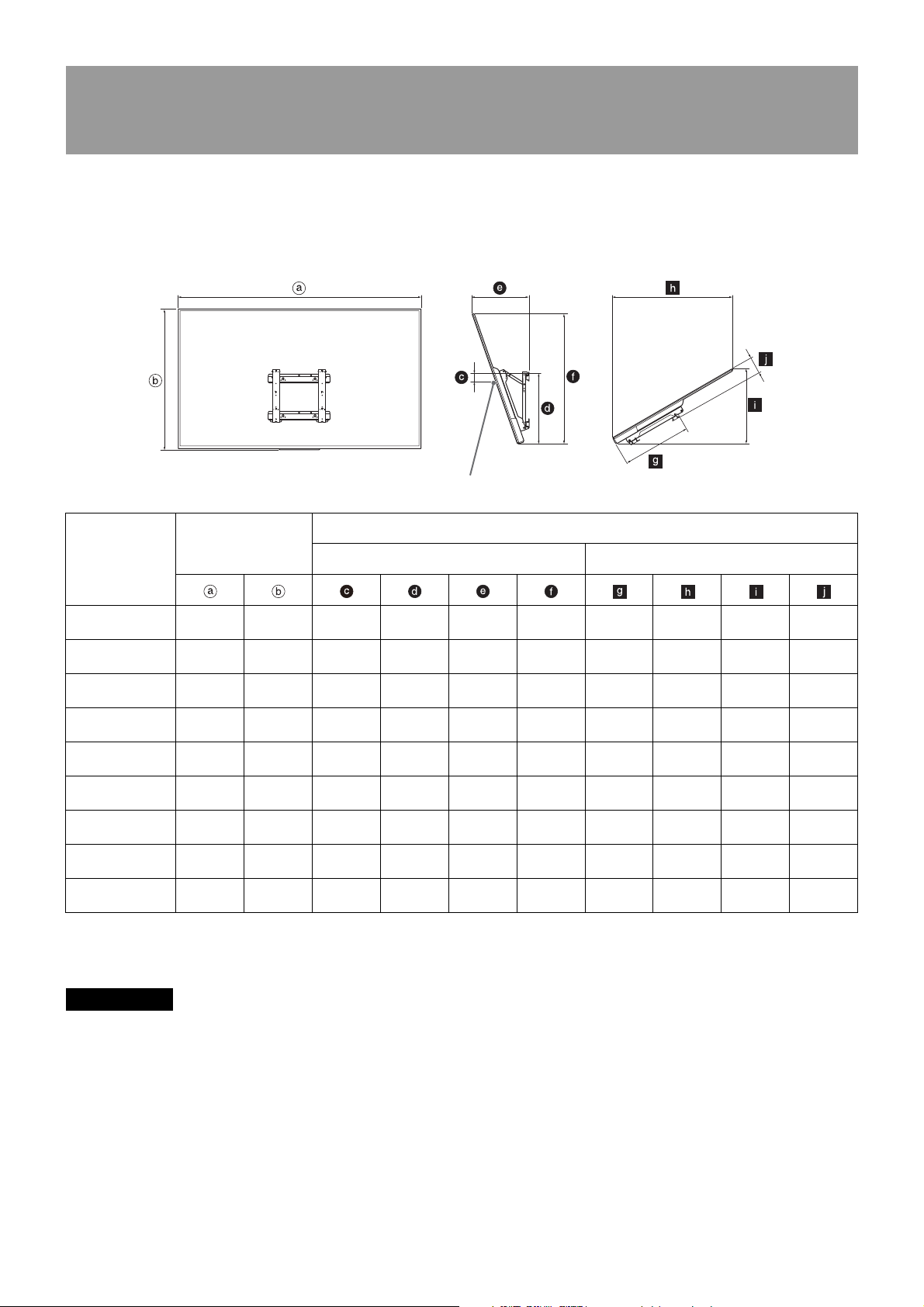 La tabla siguiente muestra las dimensiones del televisor que se monta al producto. Consulte esta tabla para
