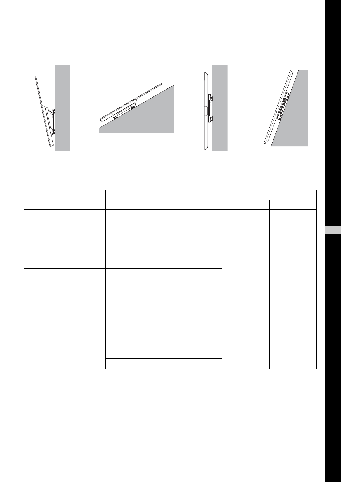 There are 4 types of installation. It may not be possible to install some types of TVs. Check the following and