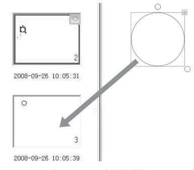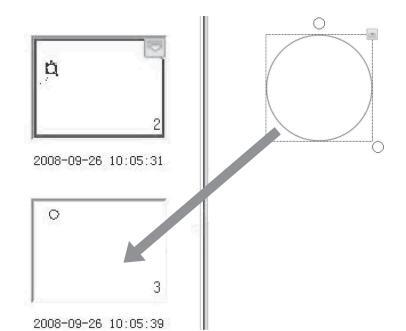 개체를 동일한 페이지의 다른 위치로 이동 하려면 하나 이상의 개체를 선택한 다음 페 이지의 새 위치로 끌어다 놓습니다. 개체를 다른 페이지로 이동하려면 하나 이 상의 개체를 선택한 다음 페이지 탭에 있는 다른 페이지의 축소파으로 끌어다 놓습니다
