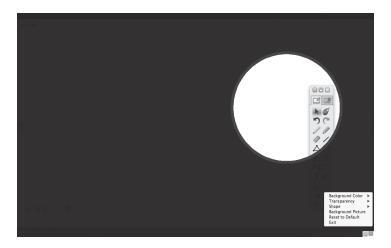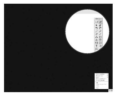 돋보기를 사용하여 화면의 영역을 확대할 수 있습니다. 오른쪽 클릭 메뉴에서 도형 확대, 배율, 창 크기 등 돋보기 속성을 변경 할 수 있습니다.
