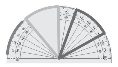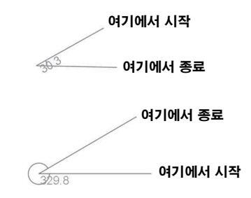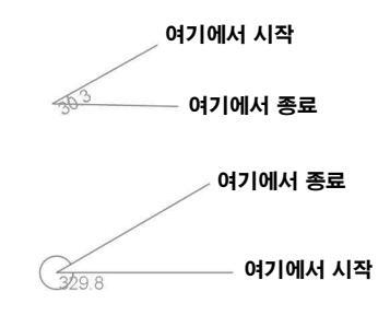 오른쪽 클릭 메뉴에서 원호, 속 찬 부채 꼴 또는 속 빈 부채꼴을 선택한 다음 선 도구 또는 선 도구를 사용하여 각도기