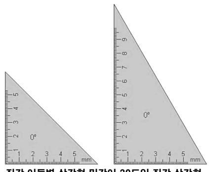 선 도구를 사용하여 자의 눈금에 따라 선택한 길이만큼 직선을 그릴 수도 있 습니다. 자를 회전하면 자 가운데 현재 회전 각도가 표시됩니다.