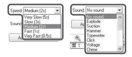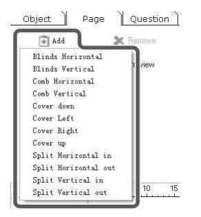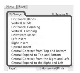 페이지에 효과를 추가하려면 "변경"을 클릭하고 드롭다운 메뉴에서 해당 효과를 선택합니다.