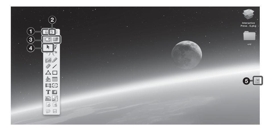 오른쪽 하단 모서리에 있는 아이콘을 클 릭하여 Interactive Presentation Utility 2에서 만든 모든 주석을 삭제합 니다.