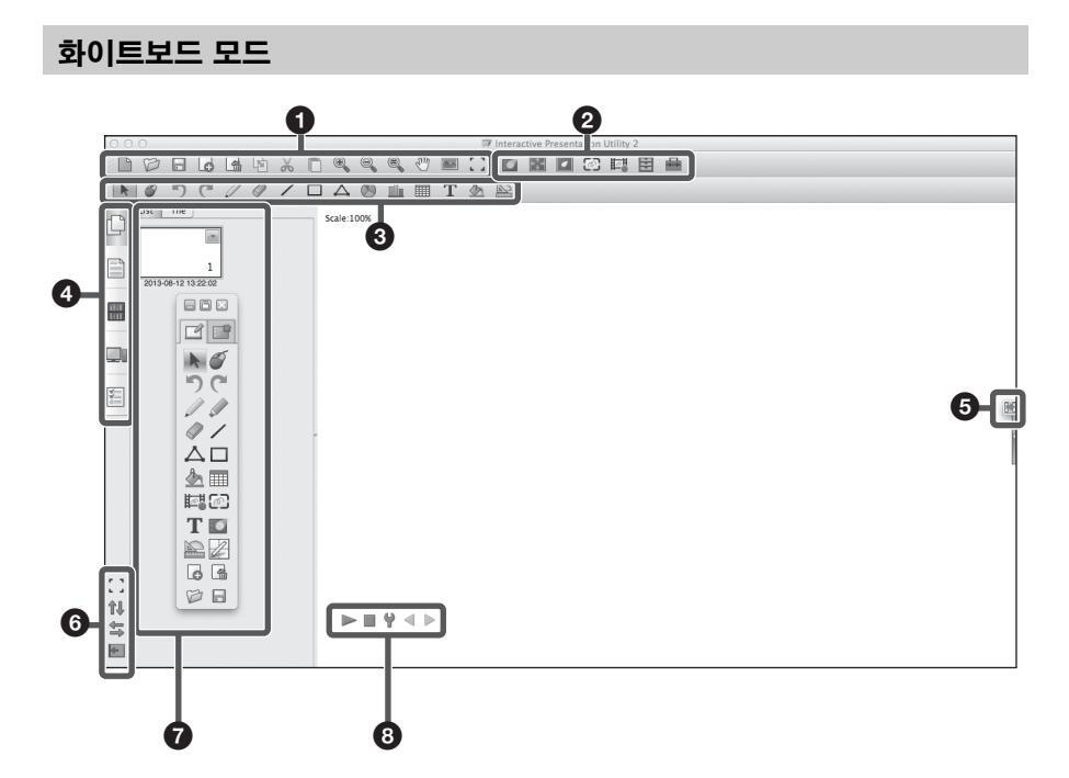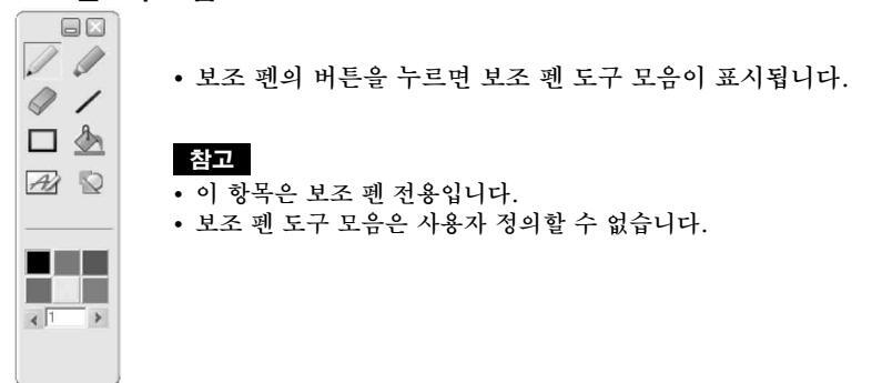 "마우스 모드"를 선택하면 대화식 펜 장치의 사용자 인터페이스가 간단하게 마우스 기능만 활성화됩니다. 마우스 기능만 사용하는 교육용 컴퓨터 소프트 웨어 또는 기타 응용 프로그램에 편리 합니다. 작업 표시줄에서 Interactive Presentation Utility 2 아이콘을 클 릭하여 팝업 메뉴를 표시한 다음, "마우 스 모드"를 선택하십시오.