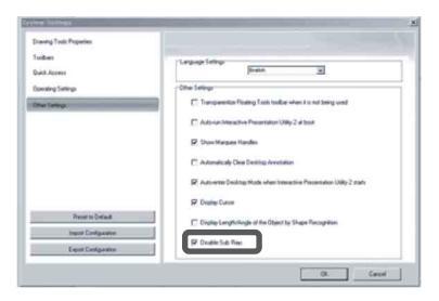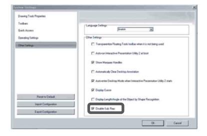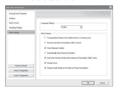 PC 시동 시 마우스 기능을 활성화하려 면 "시스템 설정"에서 "기타 설정"을 선택한 다음, "부팅 시 Interactive Presentation Utility 2 자동 실행" 을 선택하십시오.