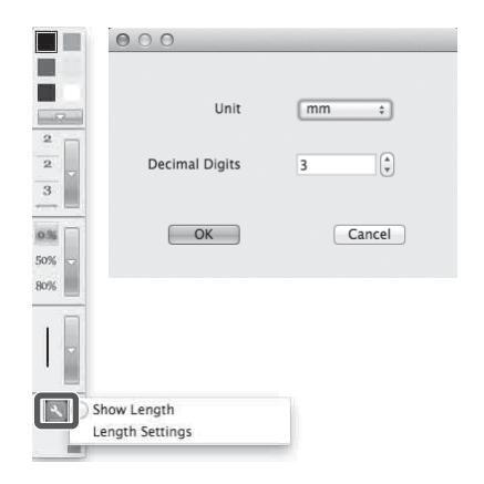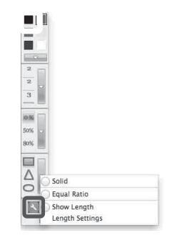 할기에서 그리기 도구를 클릭한 상태로 회전합니다. 오른쪽 클릭 메뉴에서 색 상, 투명도, 소수점 이하 자릿수, 단위 등의 속성을 변경할 수 있습니다(드롭 다운 메뉴에 cm, mm, 픽셀, 인치 단위 가 포함되어 있습니다). 단위를 수동으 로 입력할 수도 있습니다.