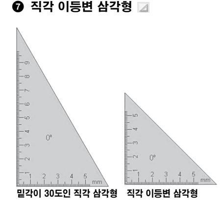 ⑤ 밑각이 30도인 직각 삼각형 직각 이등변 삼각형 및 밑각이 30도인 직각 삼각형의 직각 삼각형 도구 2가지 가 제공됩니다. 화이트보드 페이지에 직각 삼각형을 추가하려면 커서를 해당 페이지로 이동하고 직각 삼각형의 위치 를 지정한 다음 클릭합니다. 직각 삼각 형이 페이지에 표시됩니다.
