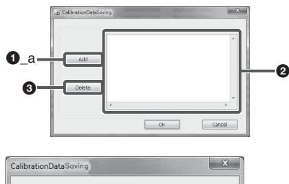 보정 데이터 목록을 표시하려면 🔊 버 튼을 누릅니다. 현재 보정 데이터를 새 이름으로 저장하려면 [Add] 버튼을 누릅니다. 저장된 데이터가 보정 데이 터 목록에 추가됩니다.