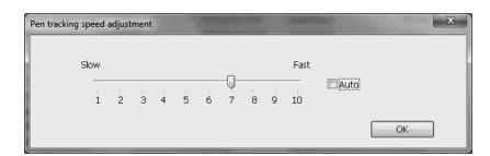 인터렉티브 펜 장치의 추적 속도를 조절할 수 있습니다. 선이 비뚤비뚤 그려질 것 같 으면 "천천히"로 설정하십시오. 단, "천천 히"로 설정하면 빨리 그렸을 때 반응이 느려 집니다. "Auto"를 설정하면 펜 추적 속도 가 도면 속도에 맞게 자동으로 조절됩니다.