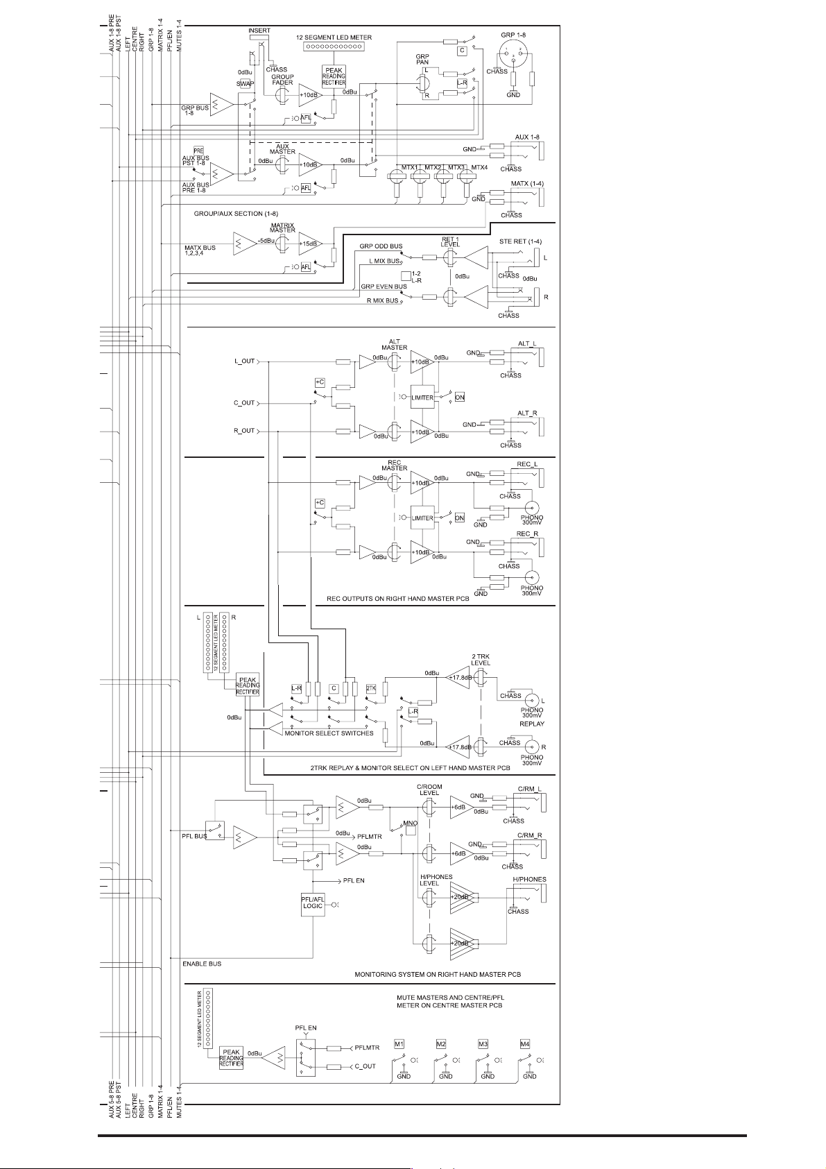 the monitor source select switches. The CENTRE meter (35) monitors the Centre mix output