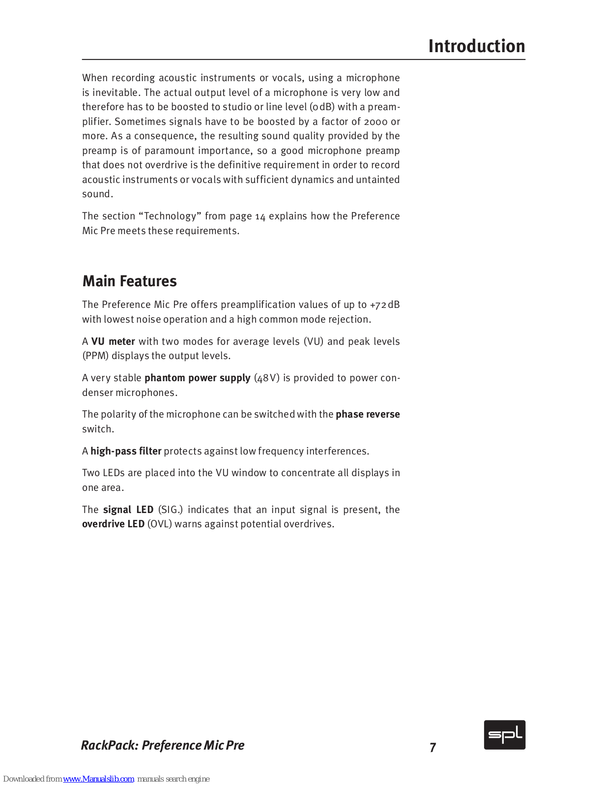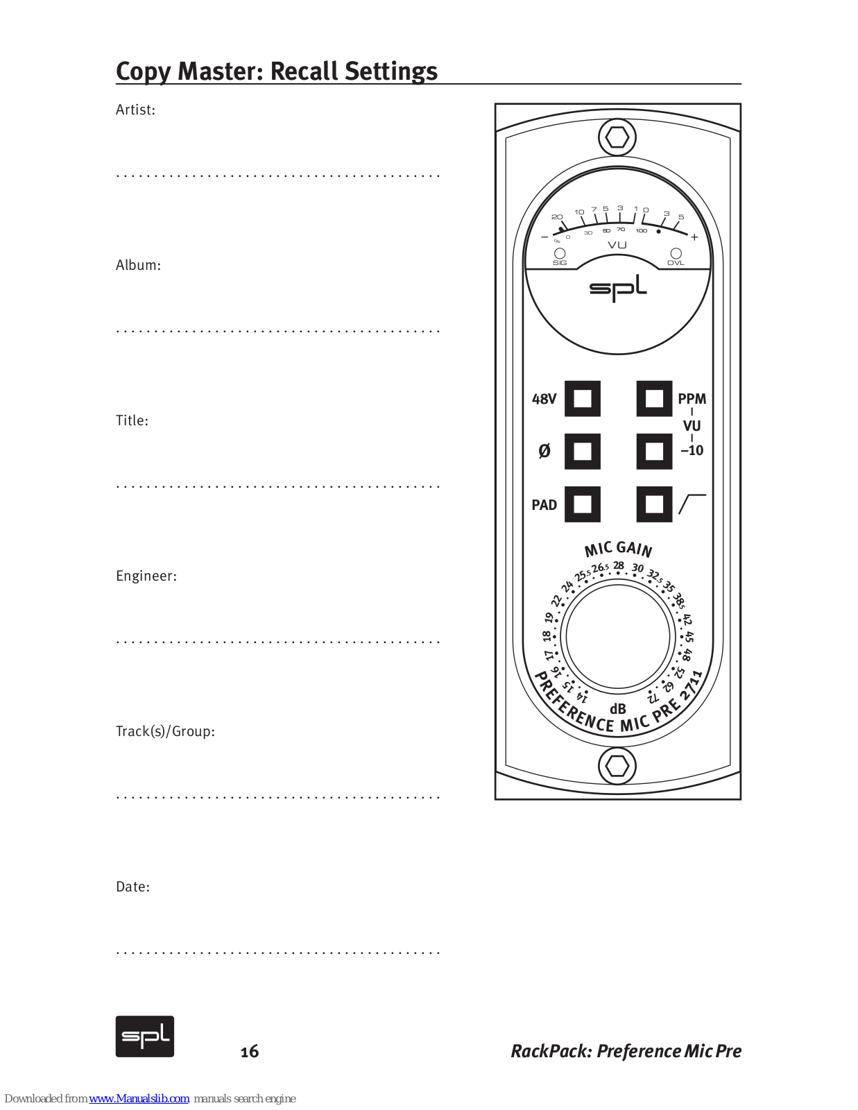 Sound Performance Lab Preference Mic Pre 2711 User Manual