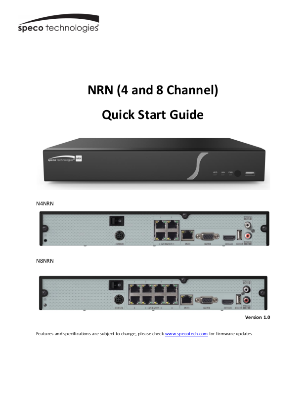 Speco will continuously make improvements, please check the website to ensure you are running the latest firmware