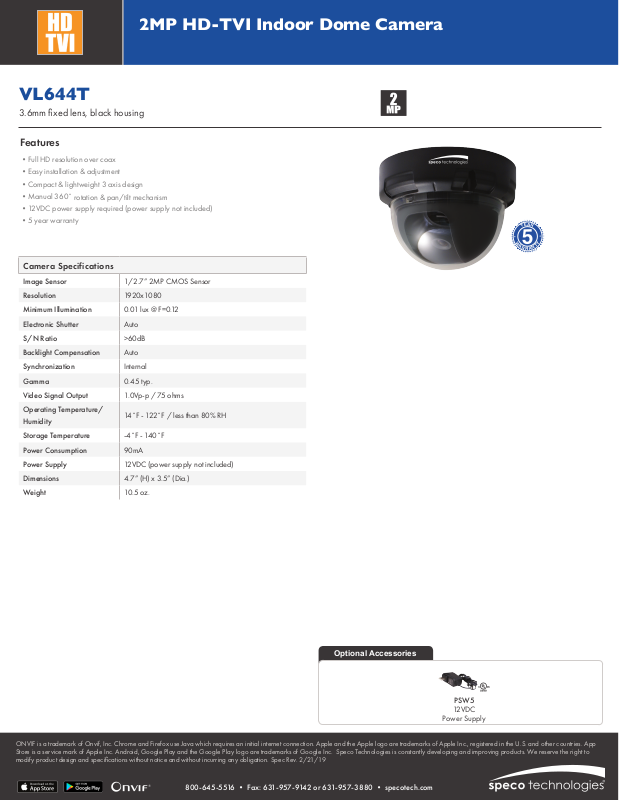 Store is a service mark of Apple Inc. Android, Google Play and the Google Play logo are trademarks of Google Inc. Speco Technologies is constantly developing and improving products. We reserve the right to