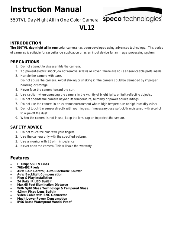 The 550TVL day-night all in one color camera has been developed using advanced technology. This series