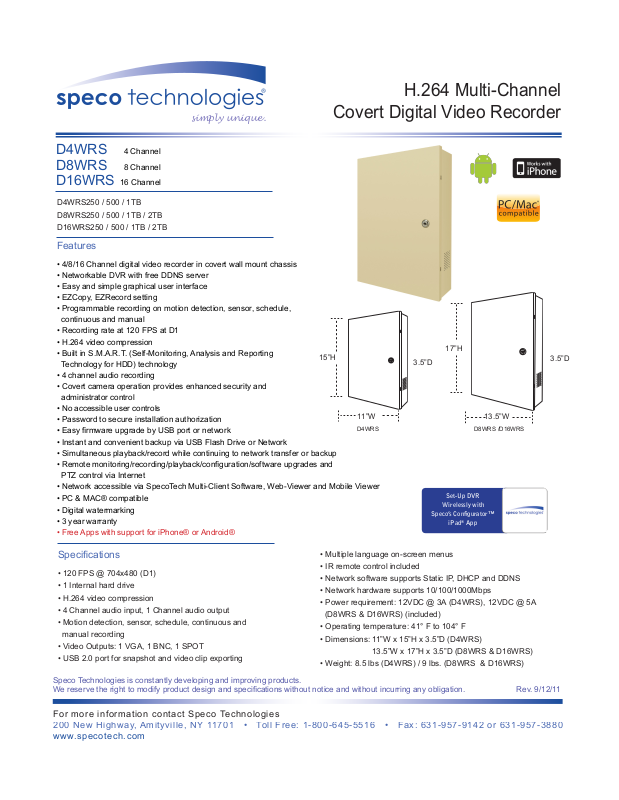 Speco Technologies D4WRS, D16WRS, D8WRS User Manual