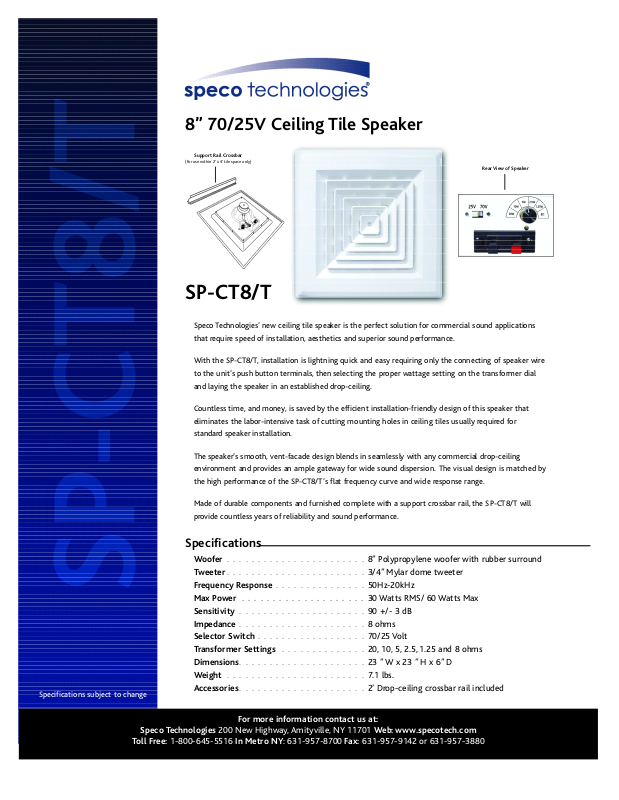 Speco Technologies 200 New Highway, Amityville, NY 11701 Web: www.specotech.com