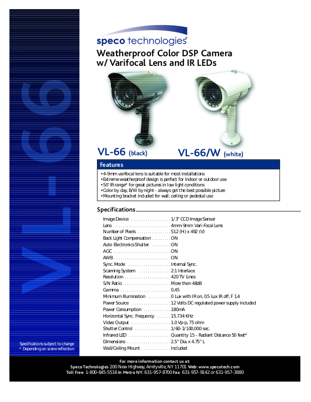 Speco Technologies 200 New Highway,Amityville, NY 11701 Web: www.specotech.com