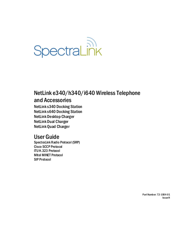 SpectraLink Corporation NetLink e340/h340/i640 Wireless Telephones and Accessories User Guide