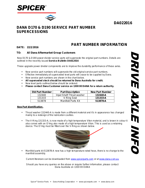 • Effective immediately all superseded level parts will cease to be supplied by Dana.