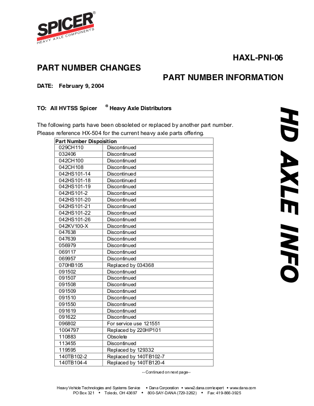 Please reference HX-504 for the current heavy axle parts offering
