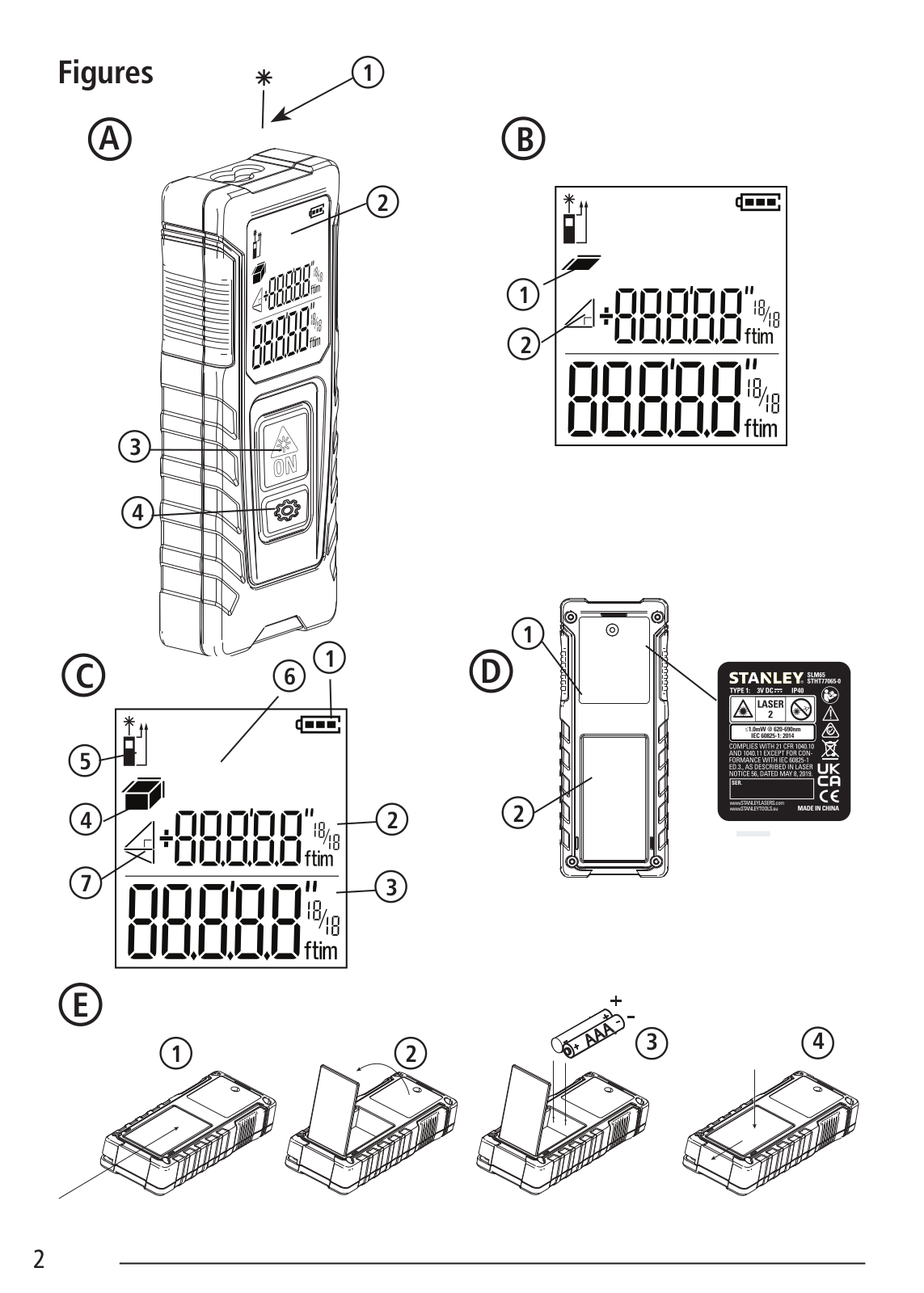 Skieruj wiązkę lasera (ilustracja A 1) w stronę ściany lub obiektu, którego odległość należy zmierzyć (ilustracja F).