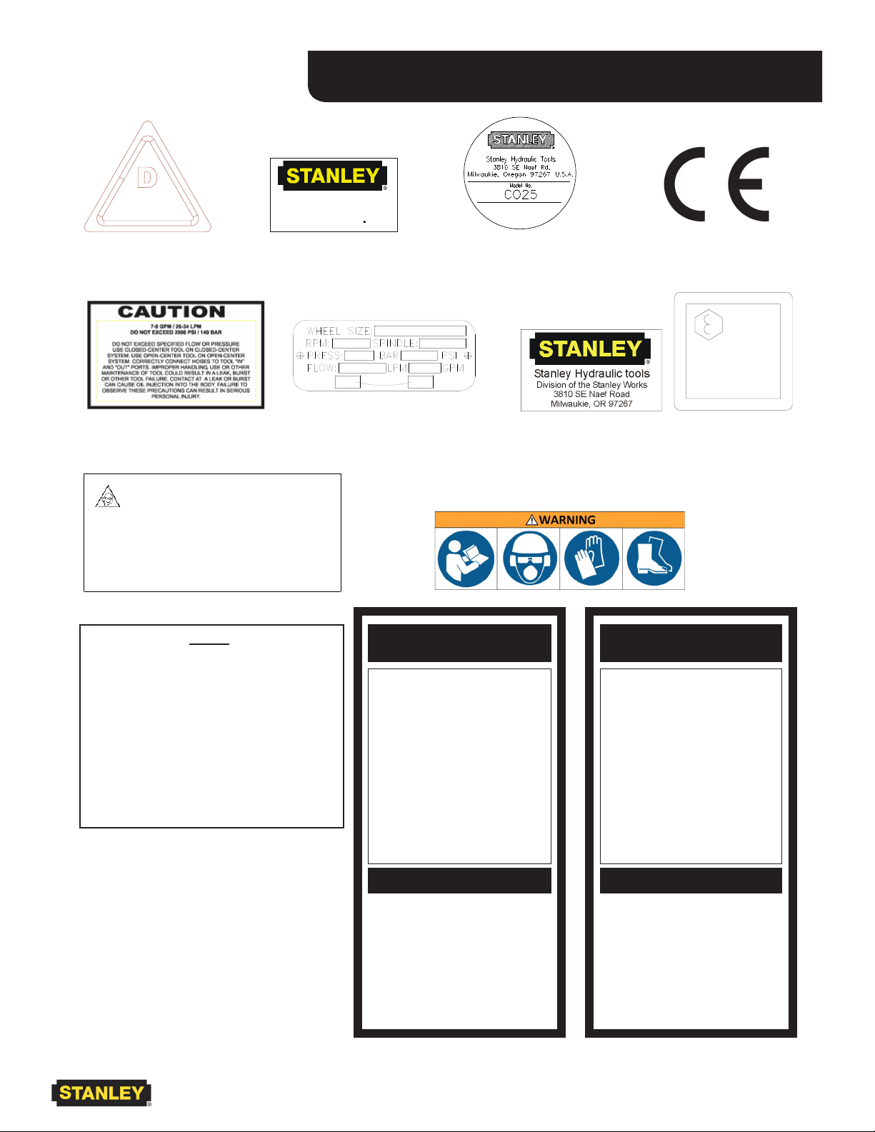 For the nearest authorized and certied dealer, call Stanley Hydraulic Tools at the number listed on the back of this