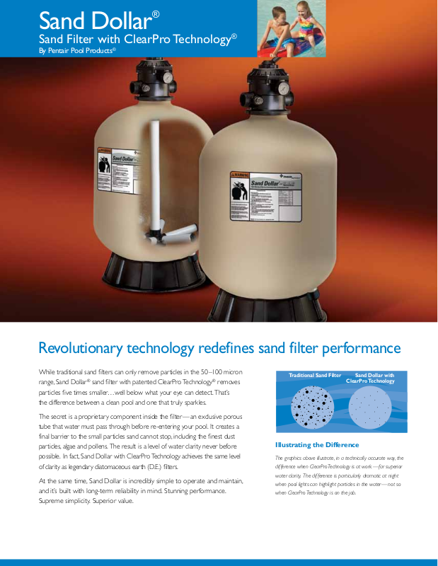 range, Sand Dollar® sand filter with patented ClearPro Technology® removes