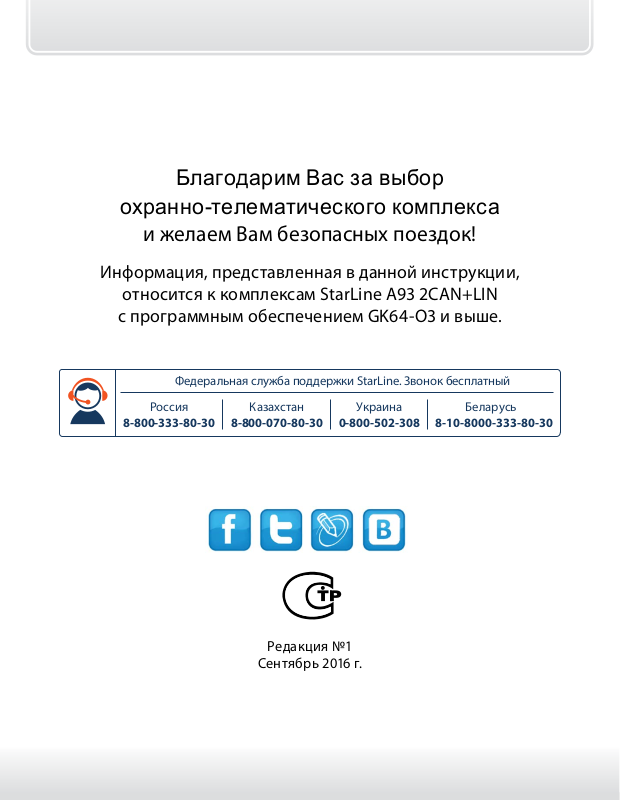 Федеральная служба поддержки StarLine. Звонок бесплатный