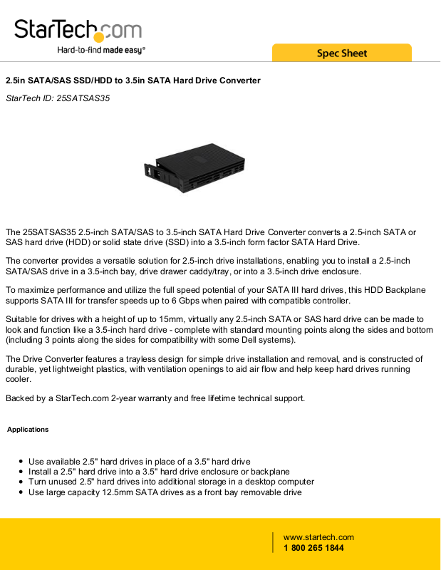 The 25SATSAS35 2.5-inch SATA/SAS to 3.5-inch SATA Hard Drive Converter converts a 2.5-inch SATA or