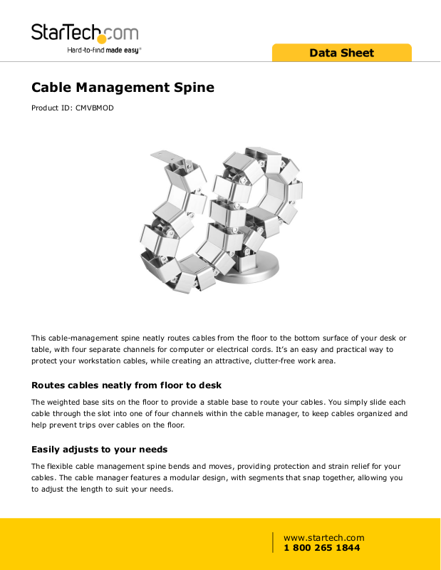 The flexible cable management spine bends and moves, providing protection and strain relief for your
